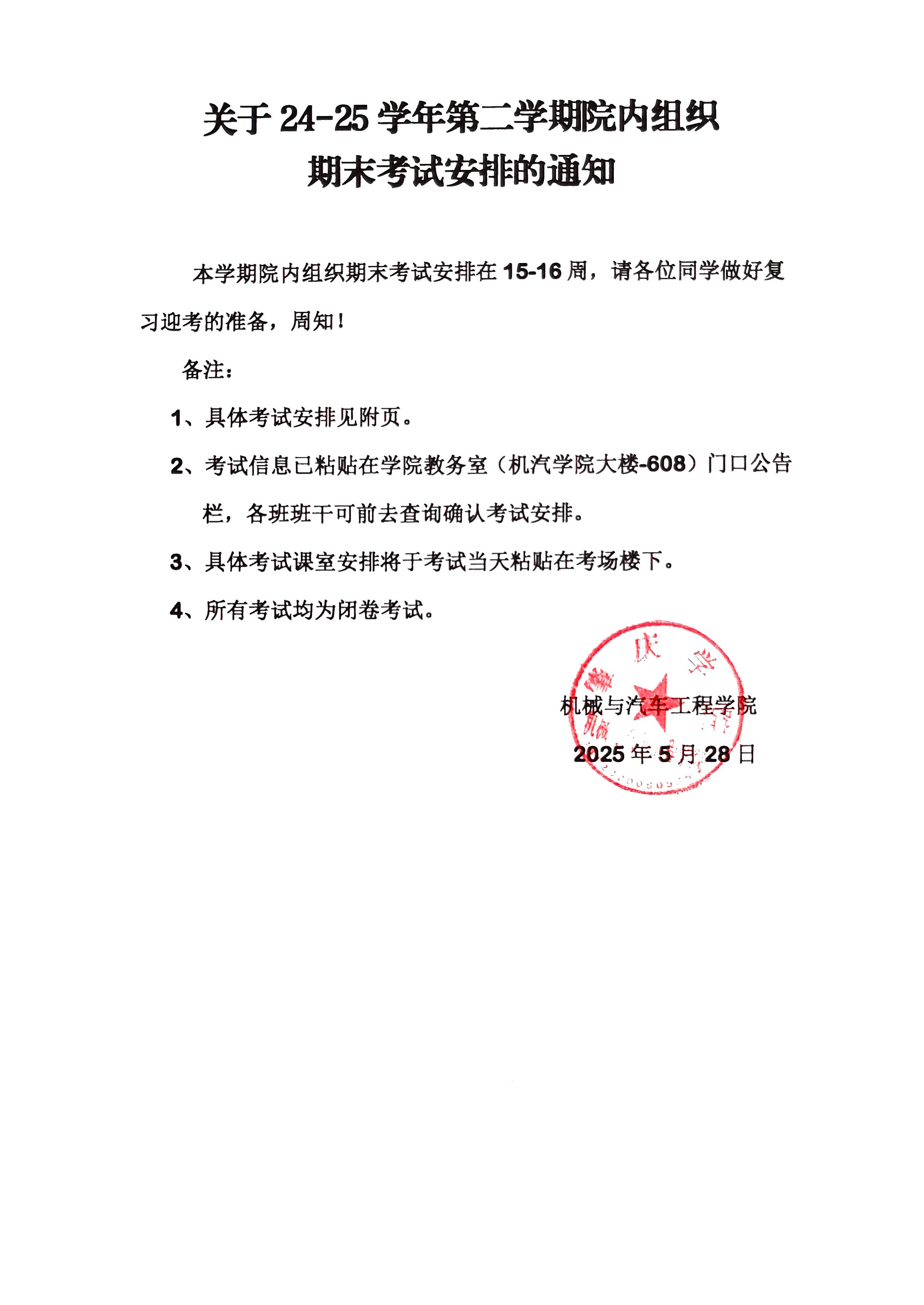 24-25学年第二学期 bv伟德国际1946院内组织期末考试的通知