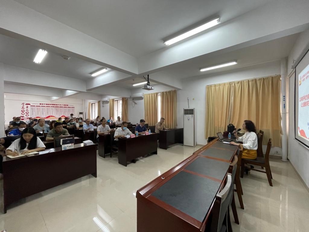 田华以《以审核评估为契机 推动课程思政建设——让主题教育在立德树人上见成效 》为题,详细讲解了学习贯彻习近平新时代中国特色社会主义思想主题教育的总要求、根本任务以及工作安排,她根据自己的学习理解,讲解了作为高校教师如何做到以学铸魂、以学增智、以学正风、以学促干,如何在各自的教育教学中全面贯彻三全育人教育思想,落实立德树人根本任务。接着她从广东省教育厅印发的本科教育教学审核评估实施方案中把牢社会主义办学方向,构建以立德树人成效为根本标准的基本原则以及“课程思政”建设与成效的评估指标入手引入课程思政建设的重要性和必要性。田华指出,全体教师要深刻理解全员、全过程、全方位的“三全育人”教育理念,强化思想理论教育和价值引领,在专业课、实验实践、创新创业等课堂教学中发掘、运用其中蕴含的思想政治教育资源,实现育人、育才的统一。最后,田华简要介绍了学院教师开展课程思政建设情况并提出了下一步课程思政建设的工作设想:学院全体教师党员要带头开展课程思政建设,参与课程思政相关培训,更新教育理念;教师党支部的党小组活动要引领各教学系开展课程思政建设研讨,完善课程目标设计、修订教学大纲、挖掘思政素材、运用现代化教学手段等;开展全院课程思政教学竞赛,提高教师课程思政教学能力和水平。