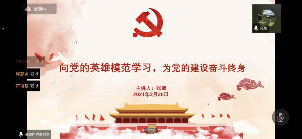 2月26日,bv伟德国际1946分党校2021年第一期培训通过线上腾讯会议顺利举行。本次培训的主讲人分别是学院党委书记田华、机械系、车辆系学生党支部书记张娜和沈少冰老师。全体学生党员、发展对象参加党课学习。